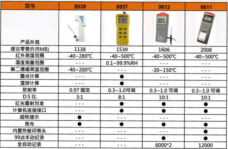 • 测量范围 -40~816℃,D:S=12:1